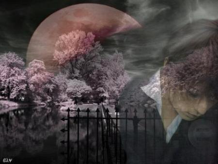 Un cri semblable à une plainte douloureuse comme un oiseau blessé en plein coeur. Comme l’ombre tremblante d’un soir d’été. Les arbres sont devenus muets et le vent tout à coup est tombé. Puis un long voile sur le ciel s’est posé Occultant les yeux douloureux des étoiles. Les nuages blancs gonflés de larmes pris au coeur son chagrin si lourd à porter silencieusement se mirent à pleurer avec elle. Parfum de tristesse intense. L’etoile avait disparu. disparition d'une étoile Un cri, semblable à une plainte douloureuse comme un oiseau blessé en plein coeur Comme l’ombre tremblante d’un soir d’été. Les arbres sont devenus muets Et le vent tout à coup est tombé, Puis un long voile sur le ciel s’est posé Occultant les yeux douloureux des étoiles. Les nuages blancs gonflés de larmes, Pris au coeur son chagrin si lourd à porter Silencieusement se mirent à pleurer avec elle. Parfum de tristesse intense. L’etoile avait disparu